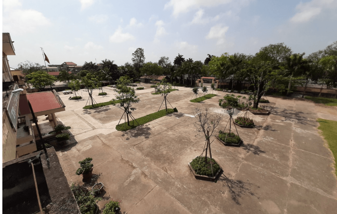 Khuôn viên của nhà trường được xây dựng riêng biệt với tổng diện tích là 11800 m2 bình quân hơn 18 m2/1 học sinh. Có tường bao xung quanh khép kín, có cổng trường và biển trường theo quy định. Nhà trường tương đối khang trang; có nhiều cây xanh, bóng mát.
